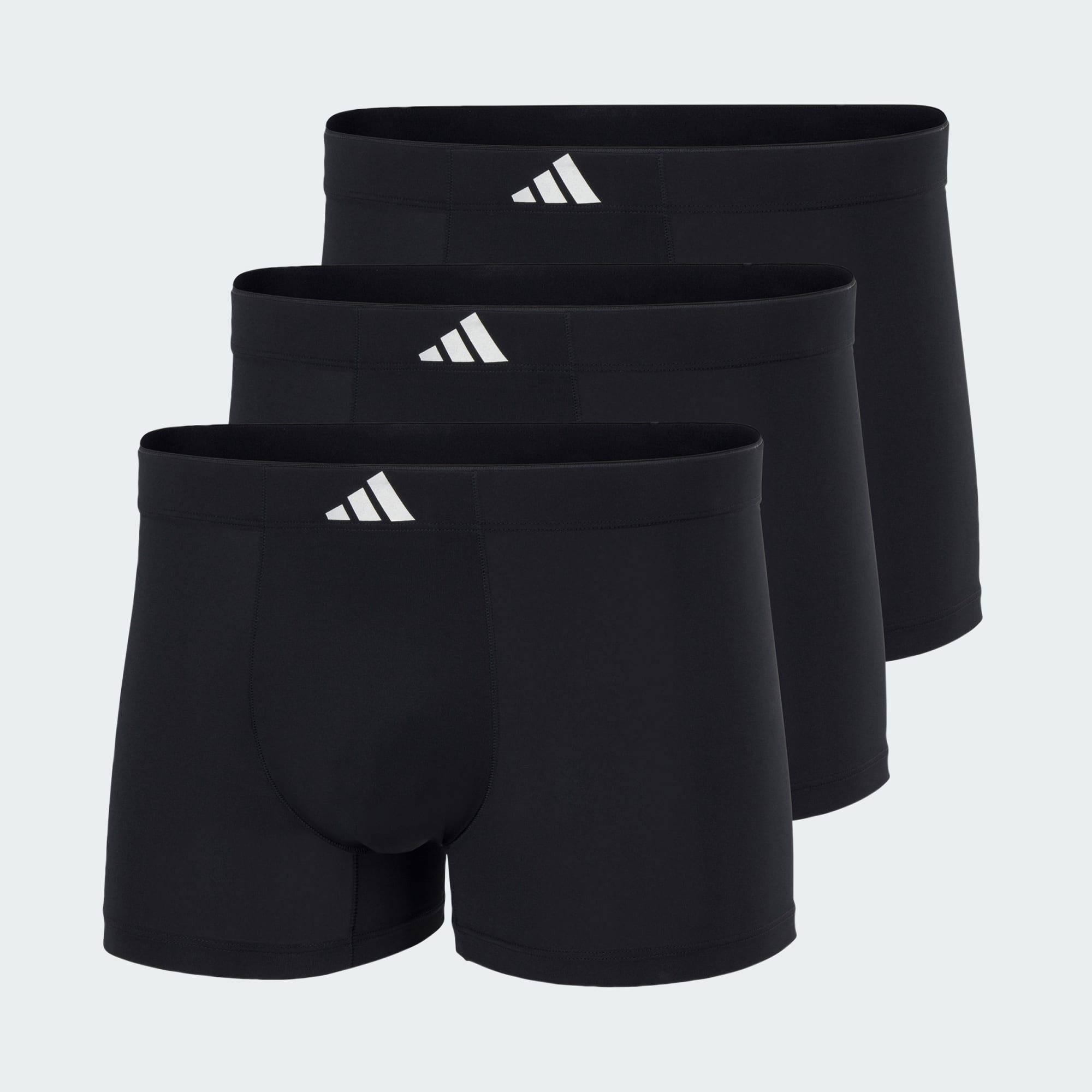 Designed for the modern man who values both performance and aesthetics, the Active Micro Tech Trunk 3 Pack Underwear offer a seamless blend of functionality and fashion. This pair from adidas incorporates the Climacool technology. Cool. Dry. Ready. Climacool wicks and disperses sweat for a cool, dry, and distraction-free performance. Made from soft-touch fabric with flexible 4-way stretch, they offer a smooth, second-skin feel that moves with you throughout the day. The elastic waistband provides a secure fit, while the round pouch construction adds natural support and shape. With their robust construction and stylish design, they are a testament to adidas' commitment to excellence in wardrobe essentials. Elevate your everyday wear with these trunks and experience the fusion of comfort and style.