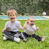 A kids' pants and t-shirt set made in part with a blend of recycled and renewable materials.