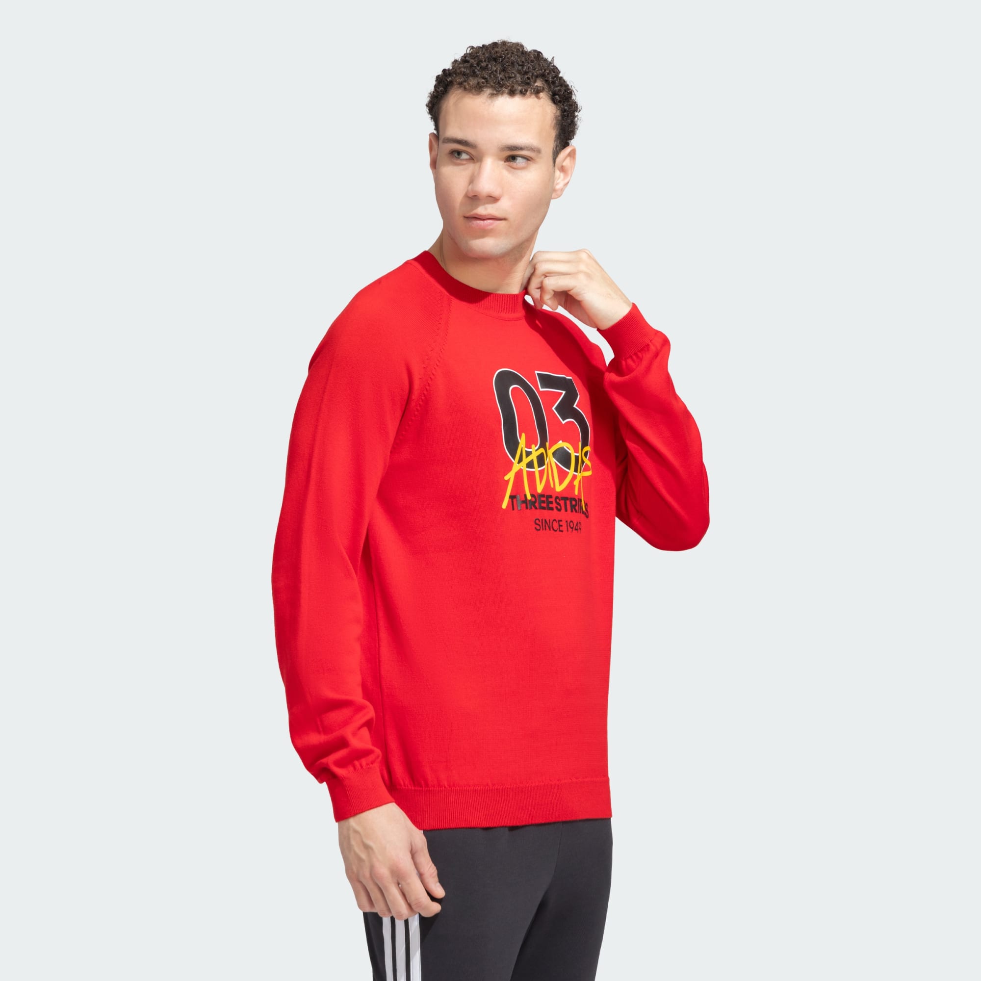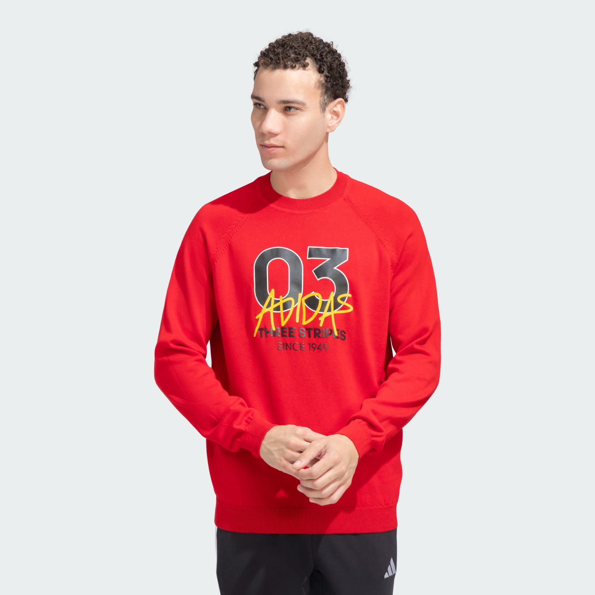 Step out the door in total comfort and sports pride with this adidas Graphics Crewneck Sweater. The placement detail at the front will surely turn heads wherever the day takes you. Pair it with fleece pants to take on the challenges with ease in cold weather.