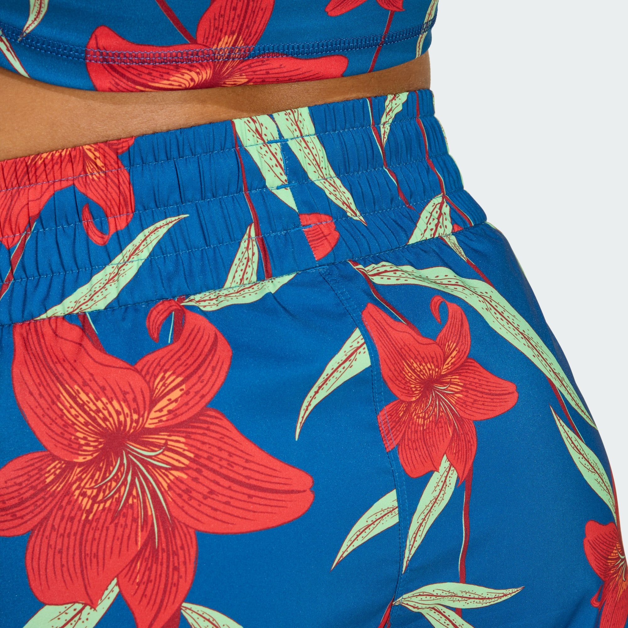 The adidas x Farm Pio Pacer Shorts are your go-to apparel for versatile training sessions. Inspired by the vibrant spirit of urban basketball courts, these shorts blend Farm Rio's tropical aesthetics with adidas' iconic DNA. Designed for comfort and style, they feature a loose fit and a drawcord closure for easy adjustability. The plain weave construction provides durability and freedom of movement. You're not just wearing adidas shorts. You're embracing a celebration of sport and culture. Join the movement and experience the power of sport to unite communities.