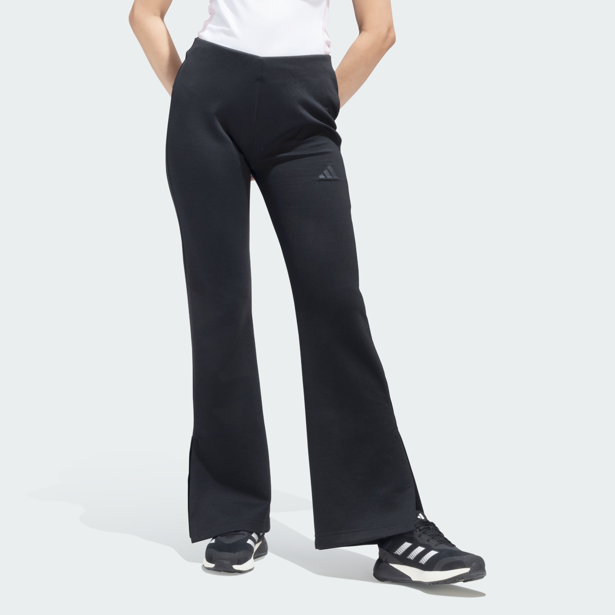 Flared pants with slit detail for a modern, versatile look.