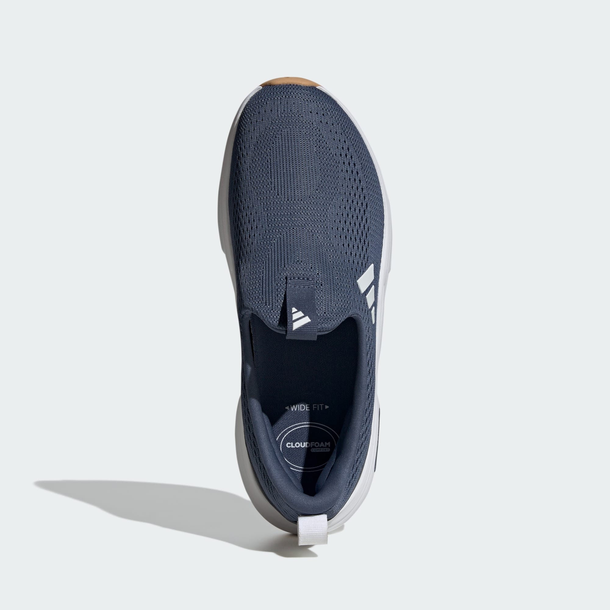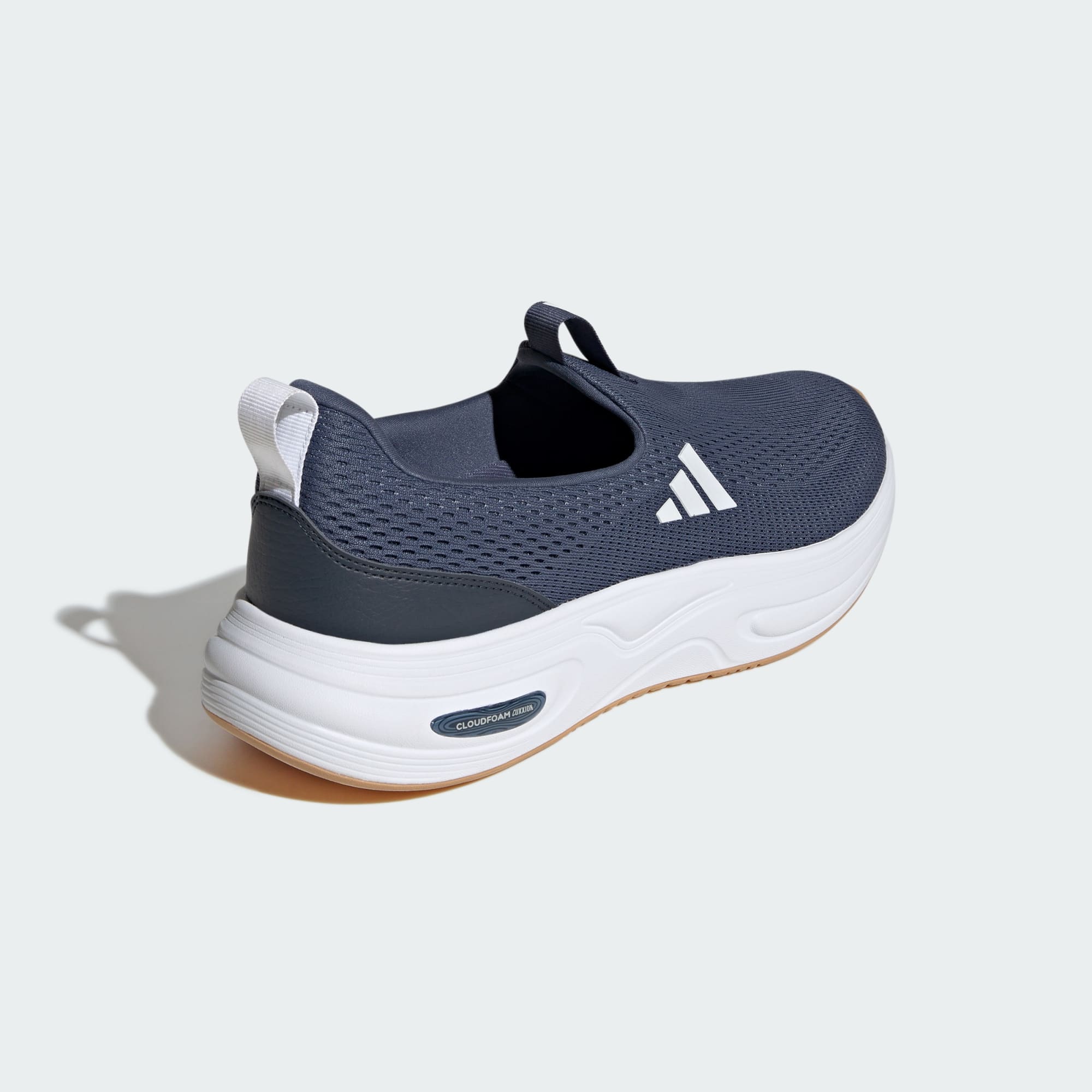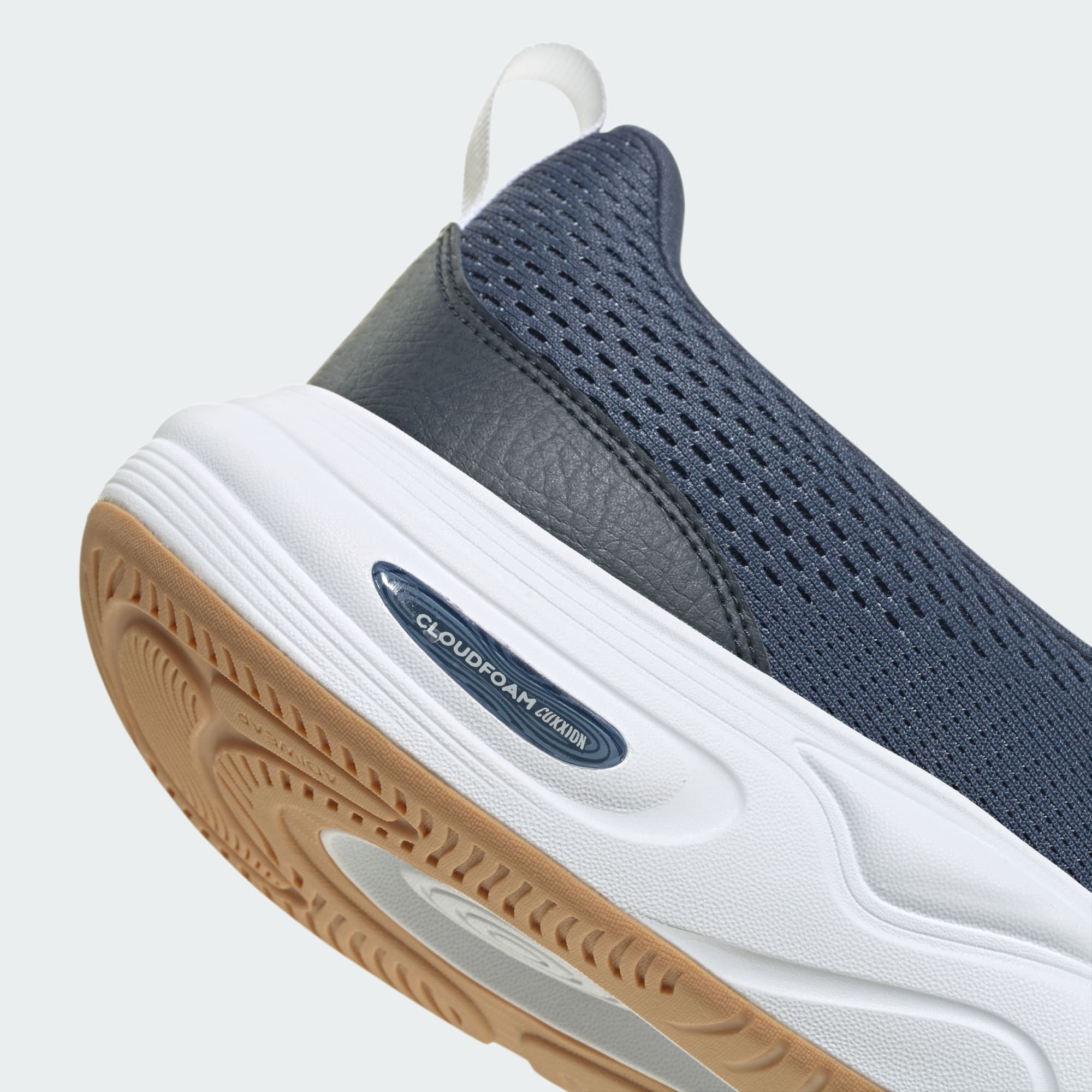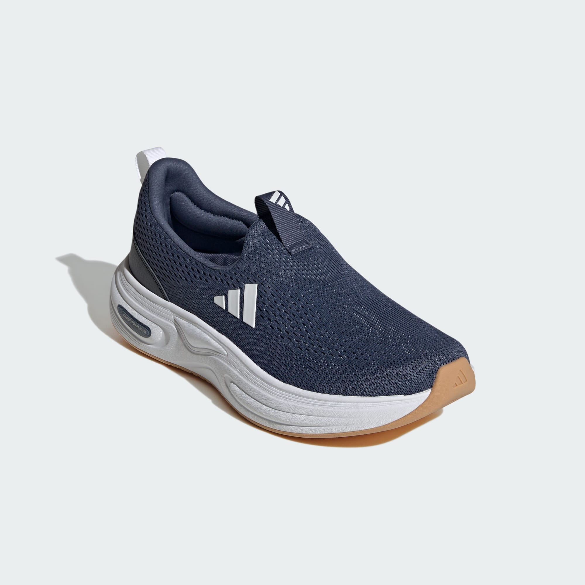 Slip-on shoes with Cloudfoam cushioning and Adiwear outsole for comfort and durability.