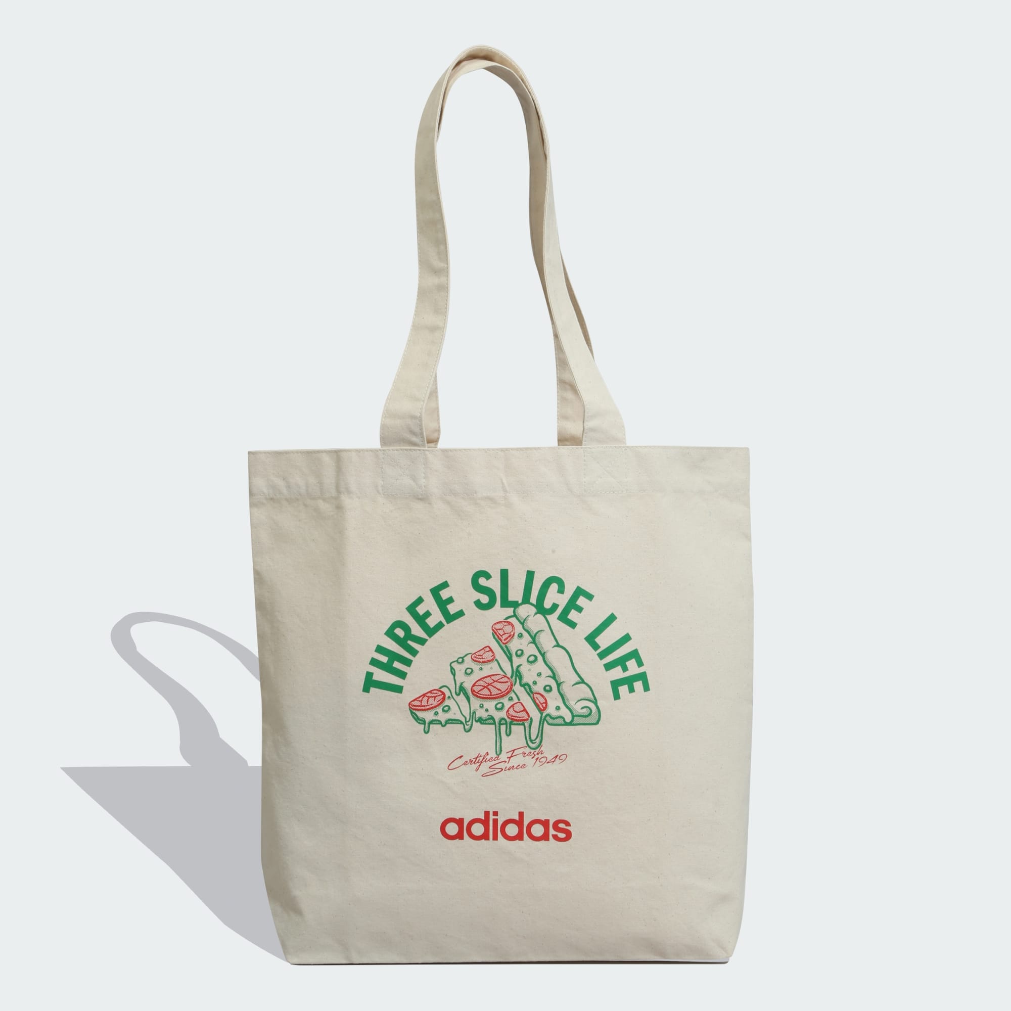 The adidas INDGFX Pizza Tote showcases a delicious representation of iconic 3-Stripes. It is designed with two convenient shoulder straps for easy carrying.