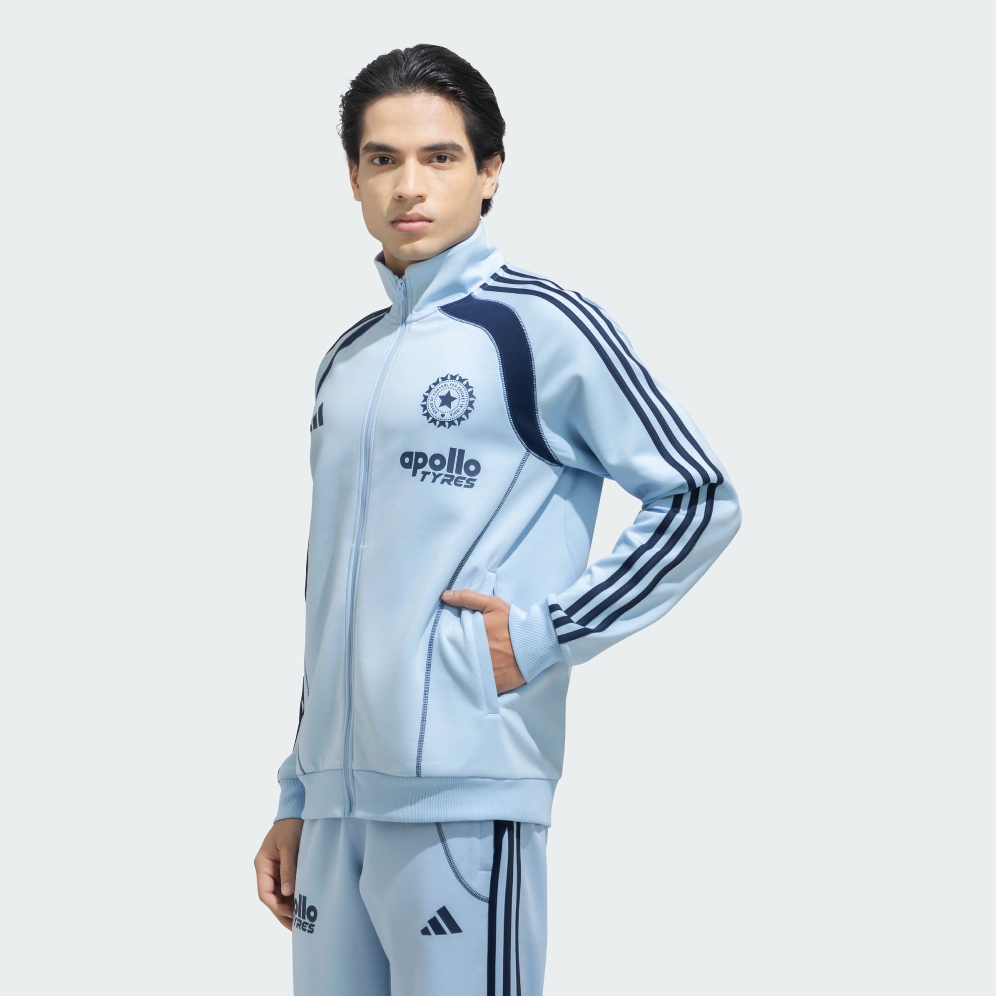 Experience warmth, elegance, and effortless style with the Cricket Travel Track Jacket. Showcasing the distinguished BCCI crest, the Apollo Tyres mark, and the iconic adidas logo, this archive-inspired piece delivers a refined blend of heritage and modern sport. Its smooth, easy-fit sleeves ensure an uninterrupted, luxurious feel, whether you’re travelling, training, or transitioning between moments in your day. Made from 100% cotton and sourced through the Better Cotton initiative, it reflects a commitment to comfort and responsible craftsmanship. A premium expression of cricket culture—designed for those who appreciate detail, quality, and distinction.