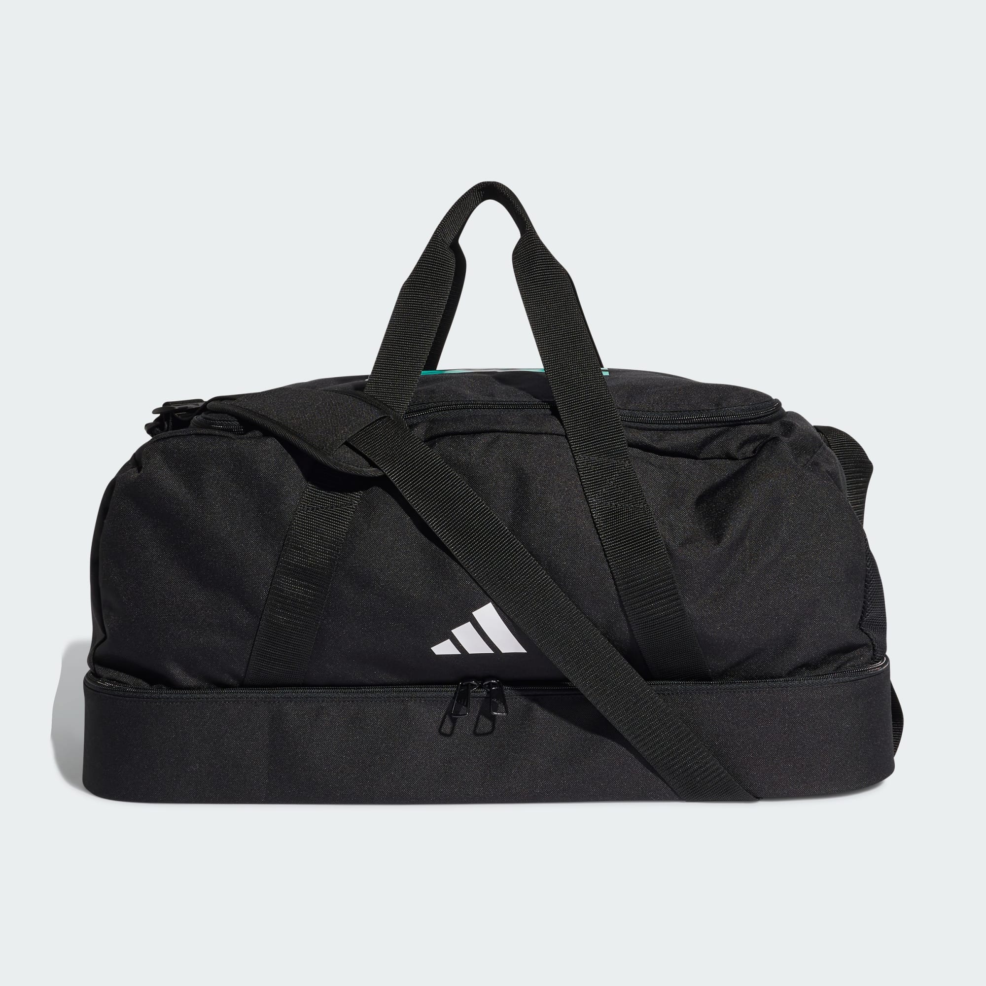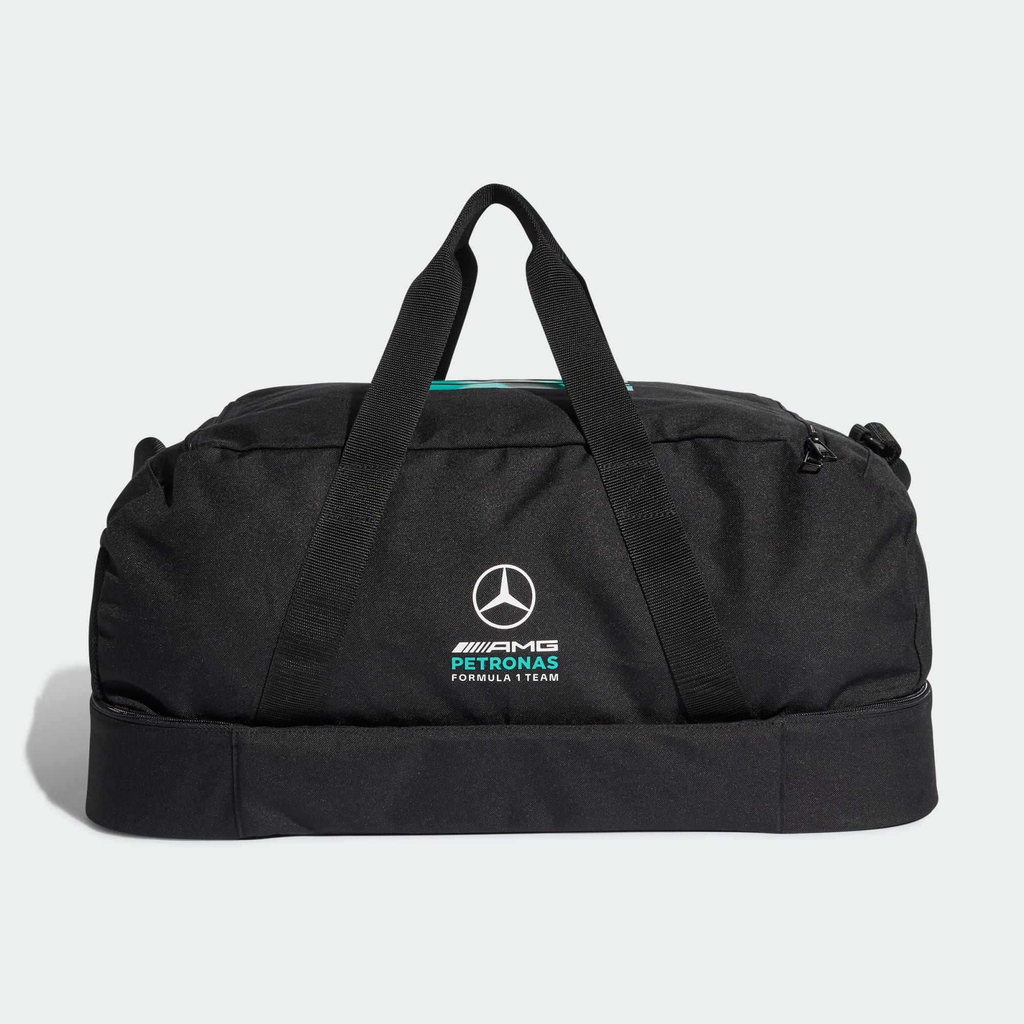 The Mercedes-AMG Petronas Formula 1 Team DNA Duffel Bag brings the thrill of the track to everyday adventures. Featuring the iconic team logo and signature colours, this adidas bag is a key piece for fans who want to showcase their passion in style. A hard-case bottom compartment keeps gear secure and organised, while dedicated sections for shoes and smaller essentials makes for speedy access. The adjustable shoulder strap and top handle ensure comfort and agility on the go, whether zipping between training sessions or heading off on a weekend break. Part of the Mercedes-AMG Petronas Fan Collection, this duffel captures the speed and precision of Formula 1, combining motorsport-inspired design with practical functionality. Gear up with adidas and carry your essentials in race-ready style.