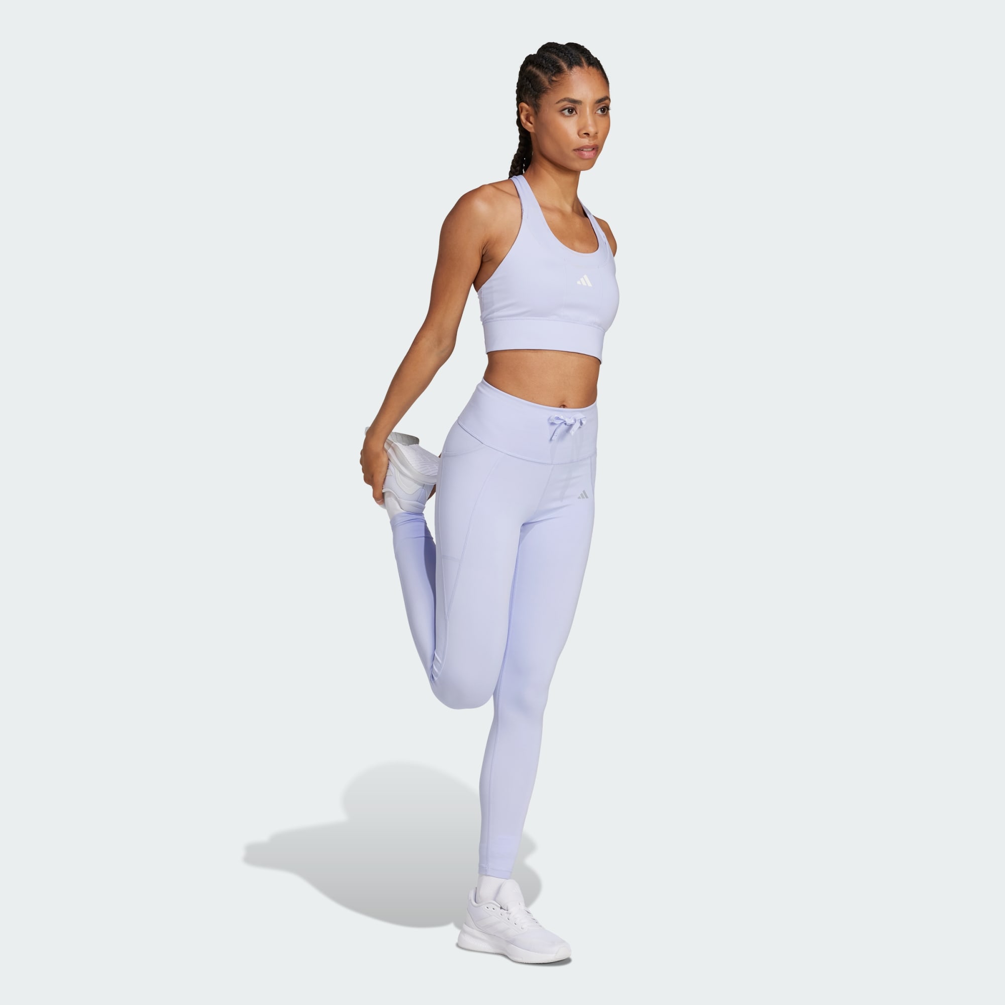 Blending style with considered design details, the latest range of adidas running staples will keep you looking and feeling good while you put in the kms. Designed to minimize distraction on high-energy runs, now you can focus on what matters most: having fun as you stride. The right leggings can make even the best run that much better. These Running Essentials Leggings will never cease to amaze, with their supportive build and sweat-wicking AEROREADY that keeps you dry. The tight fit and drawcord waist make sure that you'll never have to do the classic "awkward legging pull-up" move mid-stride. The reflective detail allows you to take to the roads even in low light. Made with a series of recycled materials and at least 70% recycled content, this product represents just one of our solutions to help End Plastic Waste.