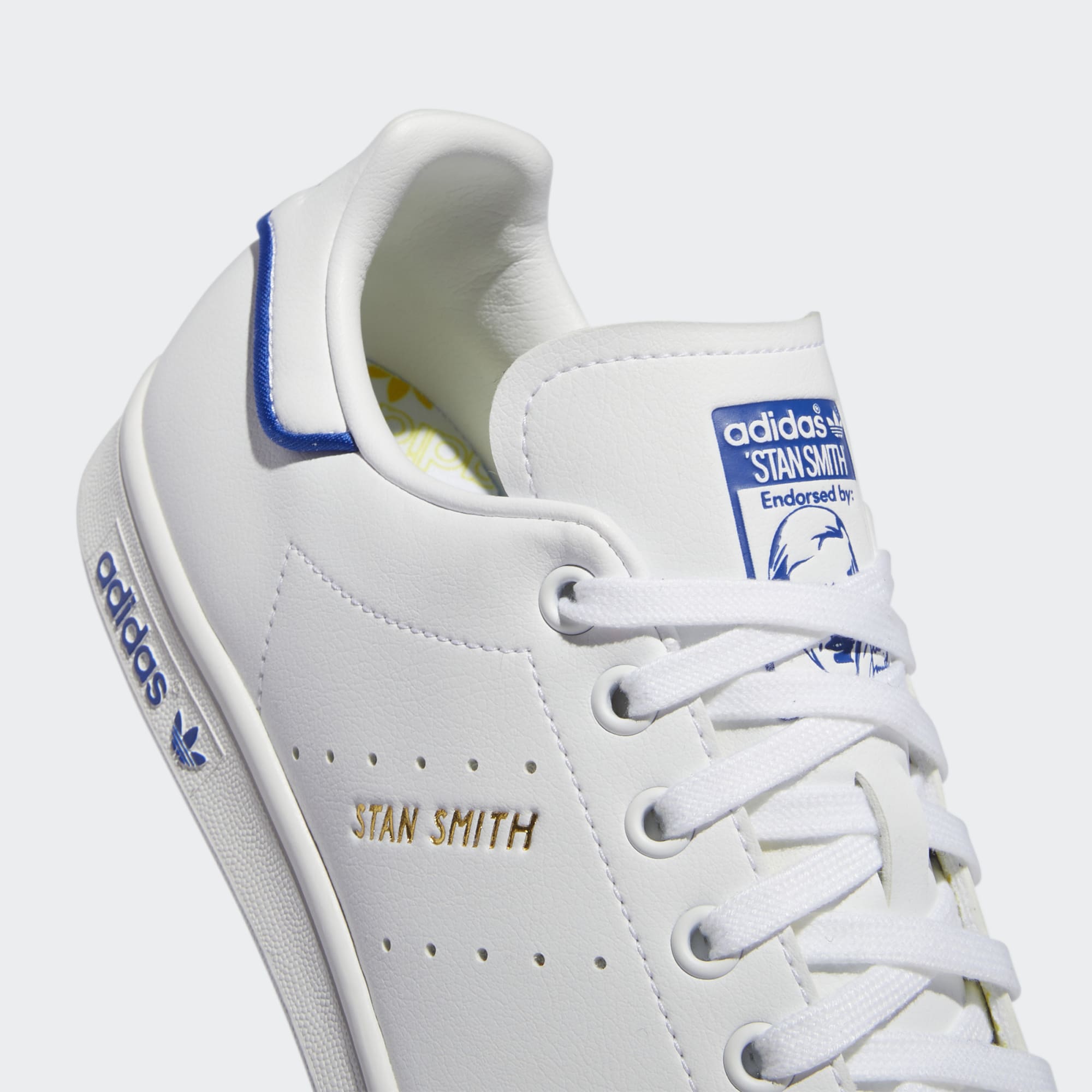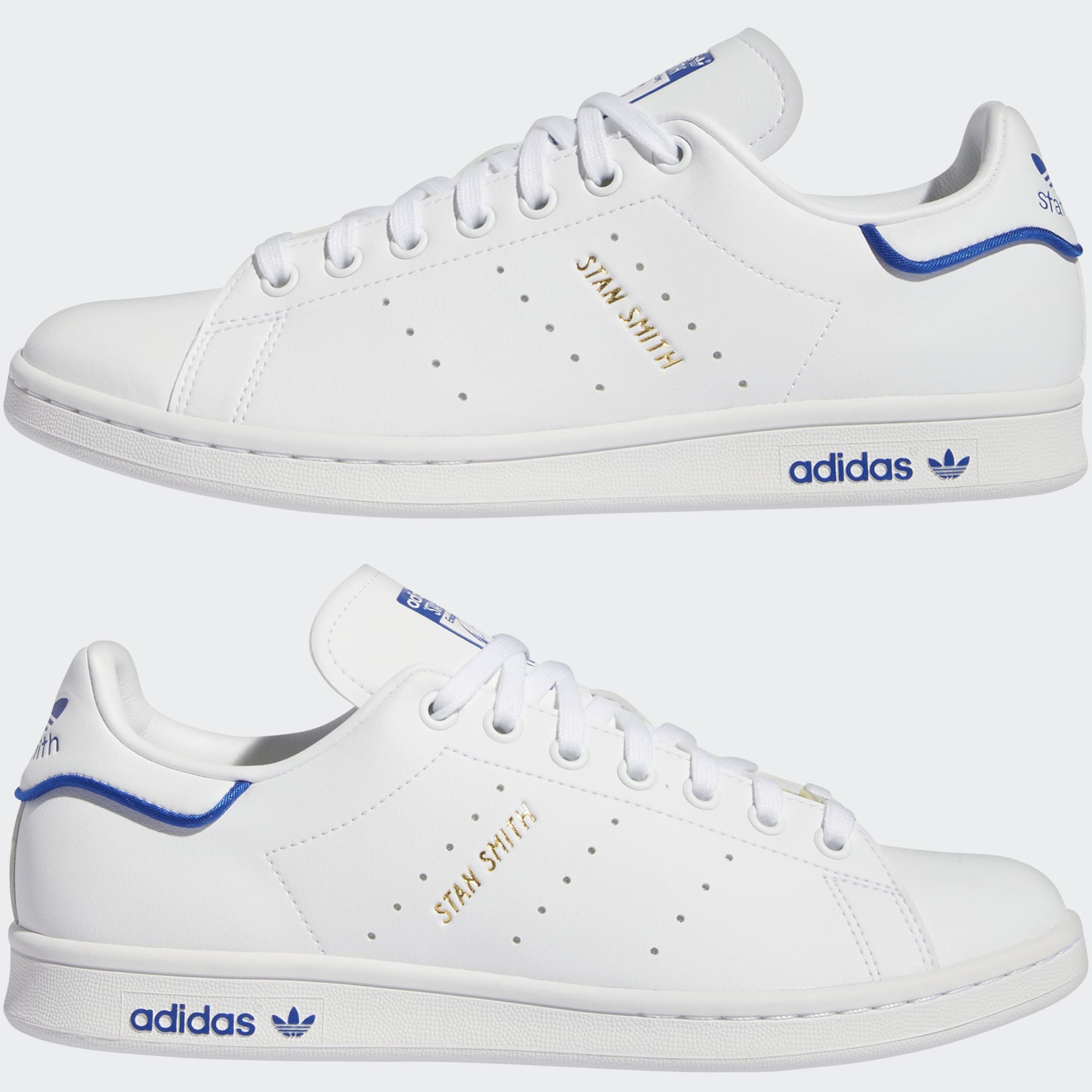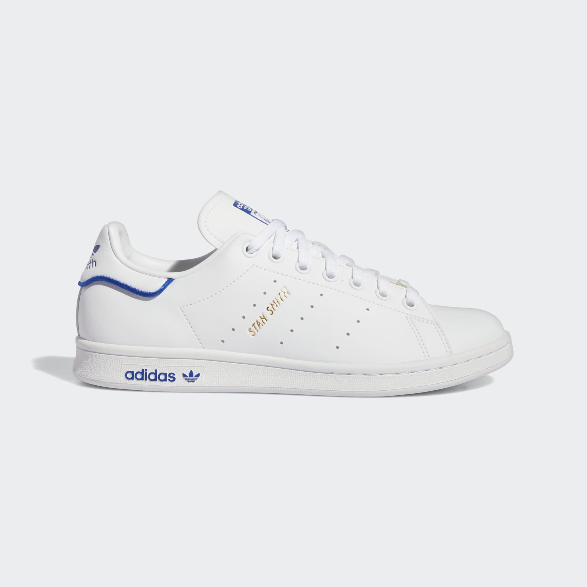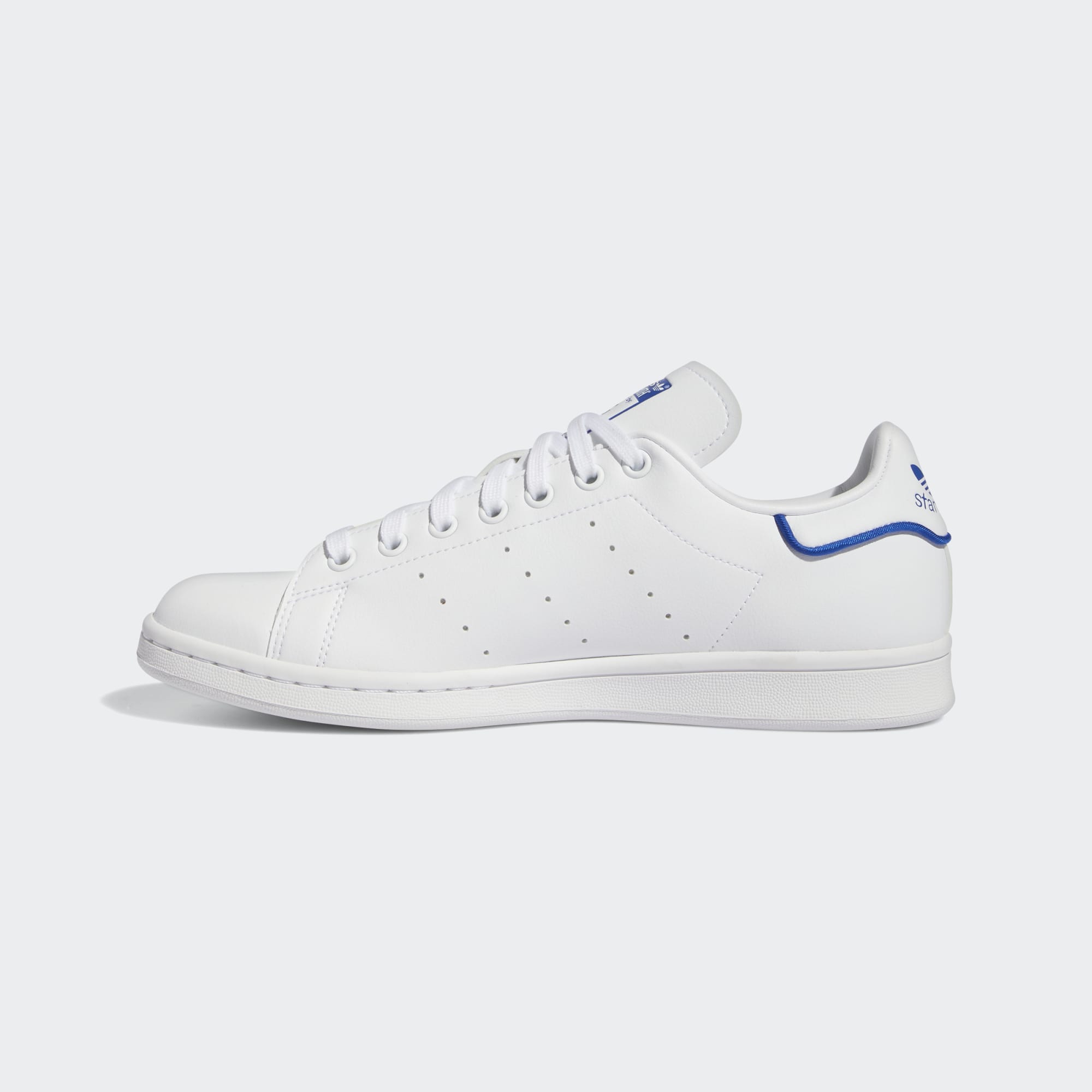 Stan Smith logos on the tongue and heel tab are paired with three perforated stripes.