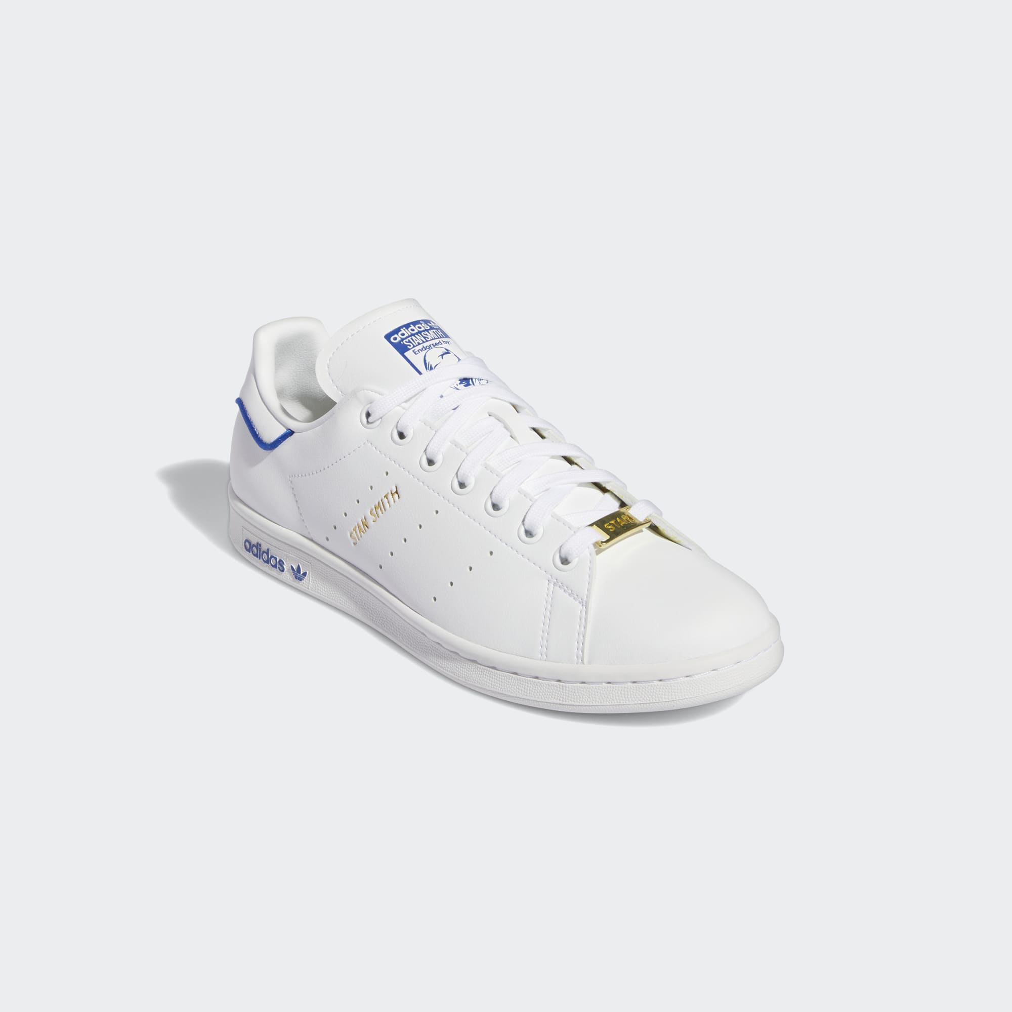 The adidas Stan Smith shoes are pretty unmistakable at this point. Clean. Minimalist. Versatile. It's their calling card, one that's continued to make an impact all over the cultural landscape. There's absolutely no disputing what these trainers are, especially since STAN SMITH flashes in gold from the side, the tongue label has the namesake's face quite boldly there and gold jewels dangle from the laces — STAN on one shoe, SMITH on the other.