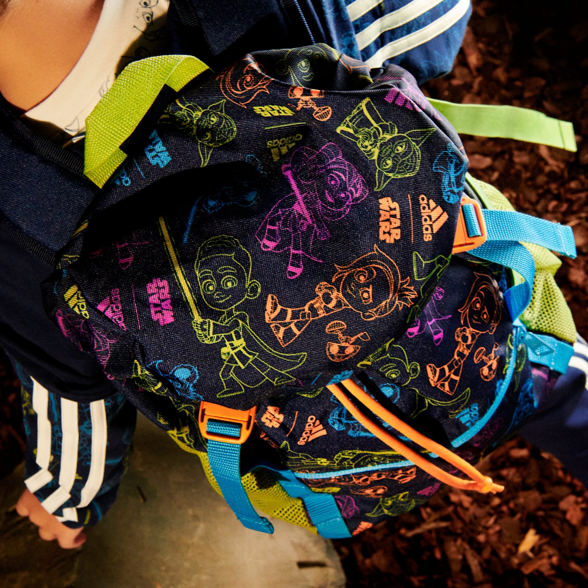 Exploring the galaxy or navigating the school halls, this Star Wars backpack is every kid's trusty sidekick. Adjustable shoulder straps provide comfort for any adventure while mesh pockets offer easy access to essential supplies. This kids' adidas backpack features compression pull straps that make bulky loads more manageable. This product is made with at least 50% recycled materials. By reusing materials that have already been created, we help to reduce waste and our reliance on finite resources and reduce the footprint of the products we make.