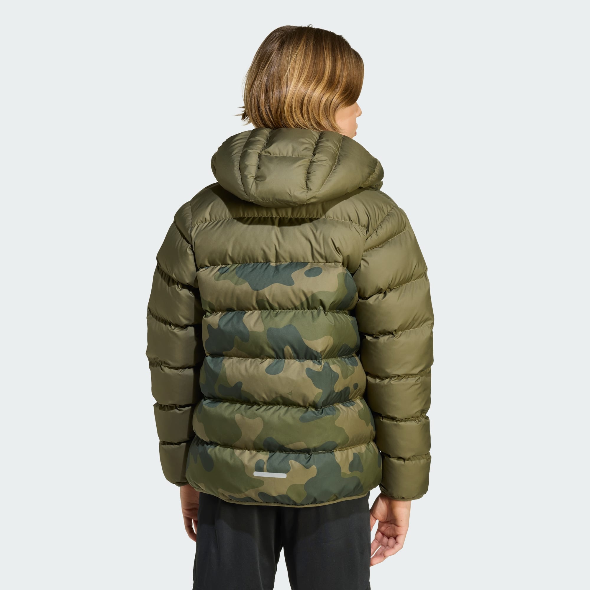 When the temperature drops, this juniors' synthetic down jacket from adidas will keep you cosy. The puffy insulation traps warmth, and the lined hood offers extra coverage. This jacket is all about subtle style, with a tonal camouflage print on the front and a reflective logo on the chest. CLIMAWARM traps heat and releases sweat for a warm, dry and focused performance. Insulating materials trap warmth for optimal body temperature. Beat the elements with thermal insulation and water-repellency for optimal shell-layer protection.