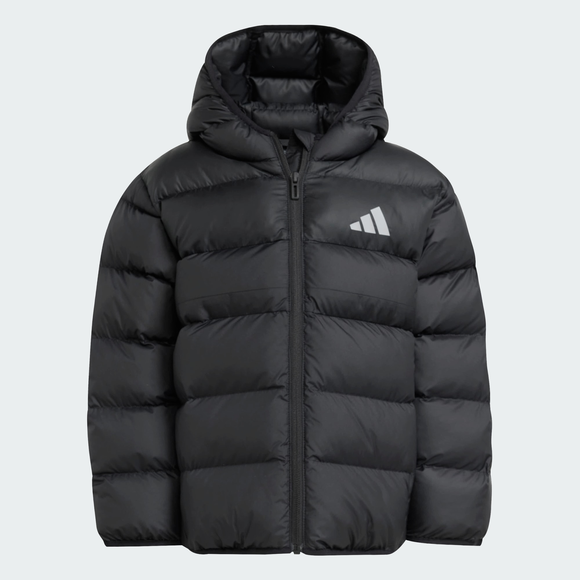This kids' down jacket from adidas is made for little adventurers. Featuring synthetic insulation for ultimate warmth, it's the perfect companion for winter walks and playtime at the park. Reflective details on the chest and back help keep them visible in all conditions. A name label inside lets them make this jacket their own. CLIMAWARM traps heat and releases sweat for a warm, dry and focused performance. Insulating materials trap warmth for optimal body temperature. Beat the elements with thermal insulation and water-repellency for optimal shell-layer protection.