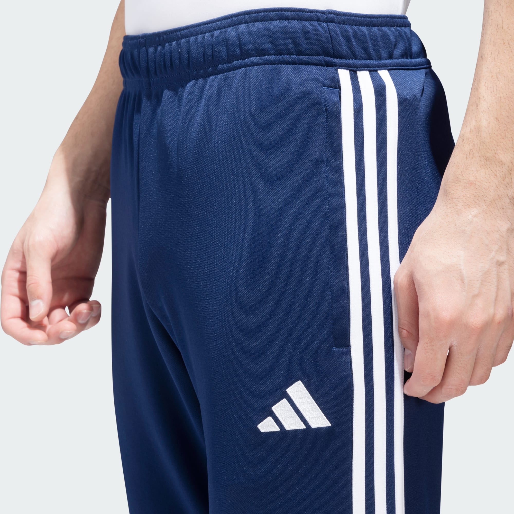 Essential training gear from adidas. Before you hit the pitch for that chilly winter session, layer up in these Tiro 23 Club football pants. Their slim, streamlined fit and moisture-absorbing AEROREADY will keep you flying through sprints and rondos. Once you reach perfect temperature, ankle zips make pulling them off over your boots a breeze.Made with 100% recycled materials, this product represents just one of our solutions to help end plastic waste.
