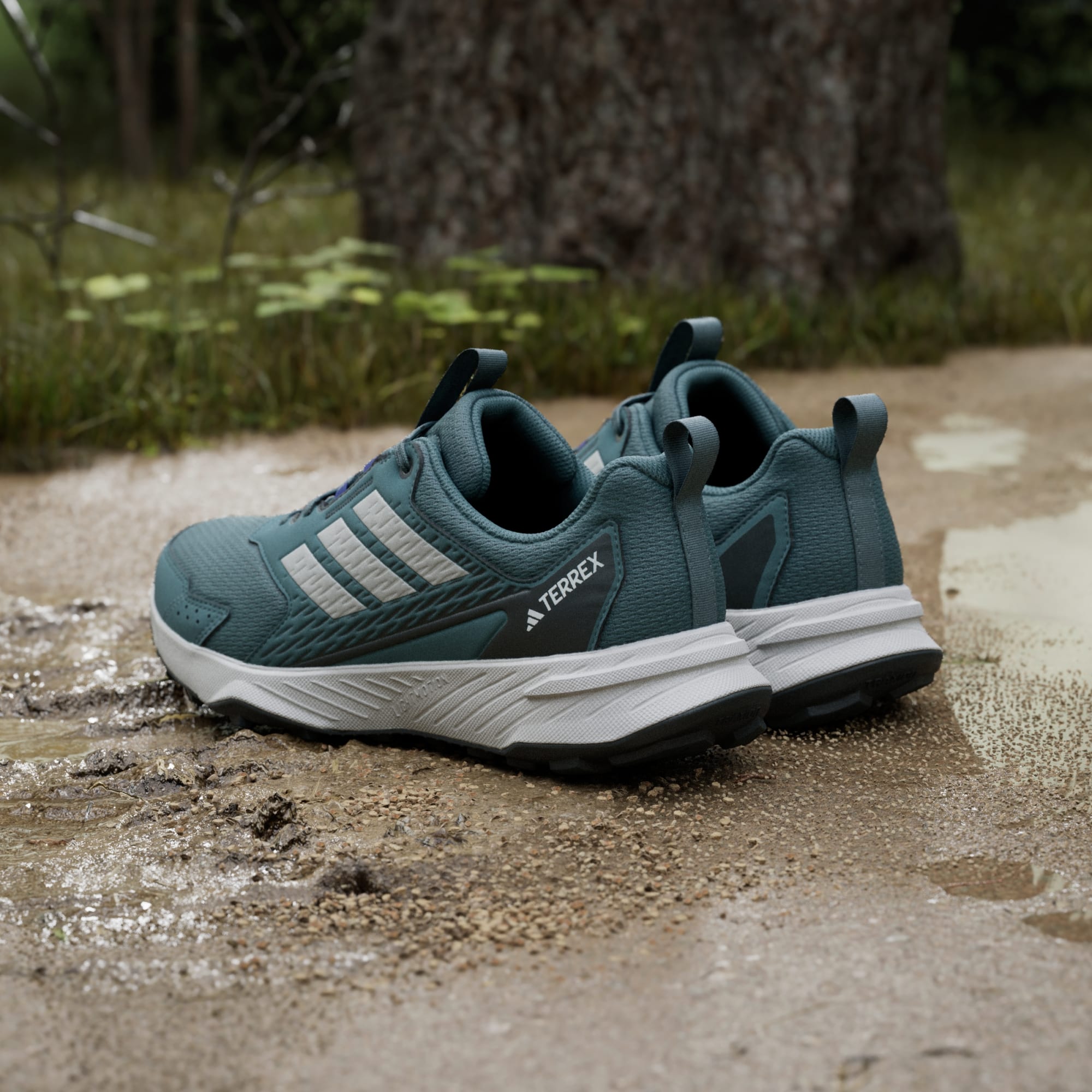 Ready, set and explore. Whether you prefer to run or walk, these adidas Terrex trail running shoes support your effort with a balance of cushioned comfort and breathability. The reinforced upper offers off-road durability and support to extend your range to the trails. A grippy Traxion rubber outsole with a lugged tread maintains a sure-footed feel in all terrain.