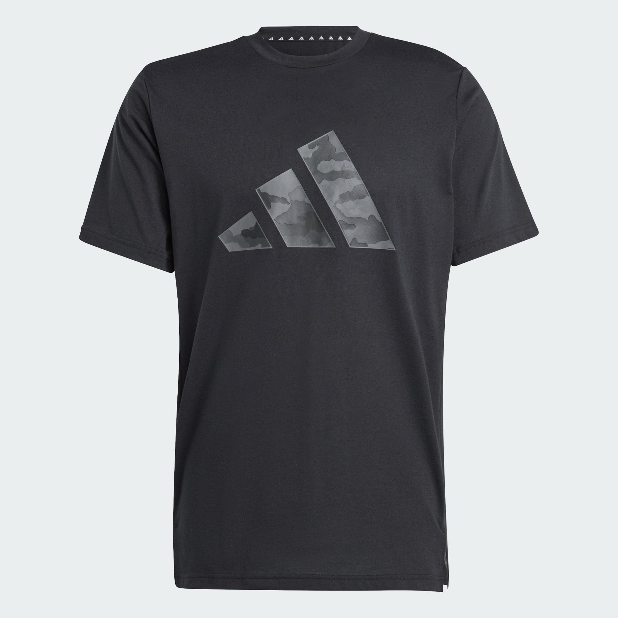 This adidas t-shirt lets your workout and your style speak for themselves. AEROREADY keeps you dry as the intensity builds, so you can push through one more set. Camouflage on the adidas logo makes sure all eyes are on you, even when you're focused on beating your personal best. By choosing recycled, we are able to reuse materials that have already been created, which helps to reduce waste. Renewable materials choices will help us to remove our reliance on finite resources. Our products made with a blend of recycled and renewable materials feature at least 70% total of these materials.