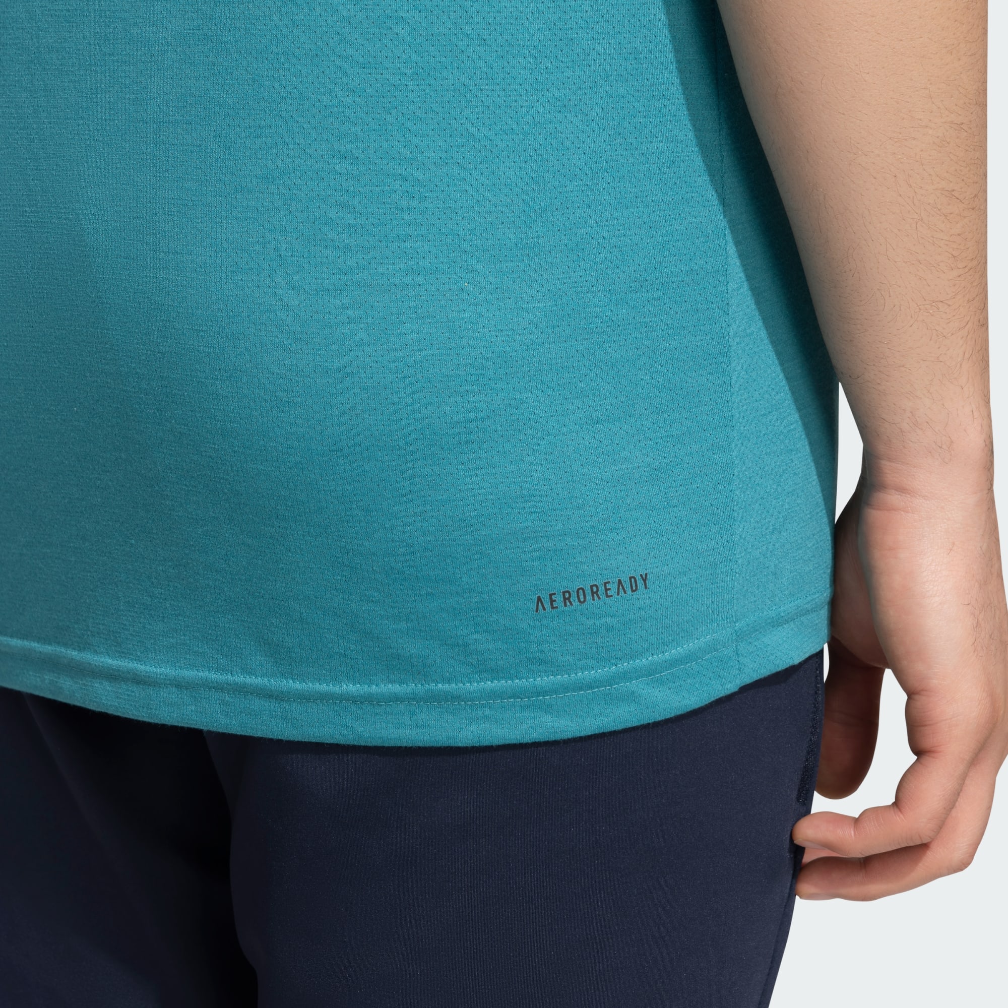 It's not about how hard you train but how consistent you are with it. This adidas workout t-shirt is a comfortable go-to for the everyday hustle. The breathable fabric is cut with a New Lift pattern, so you stay covered during overhead movements like shoulder presses and kettlebell swings. AEROREADY absorbs moisture to keep you dry. Made with a series of recycled materials, and at least 70% recycled content, this product represents just one of our solutions to help end plastic waste.