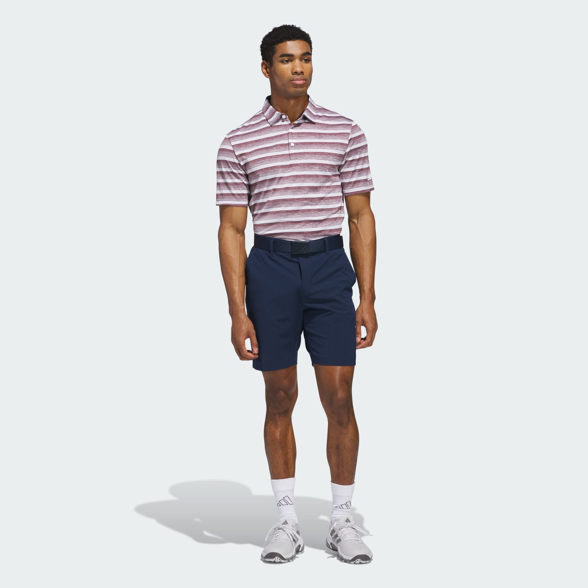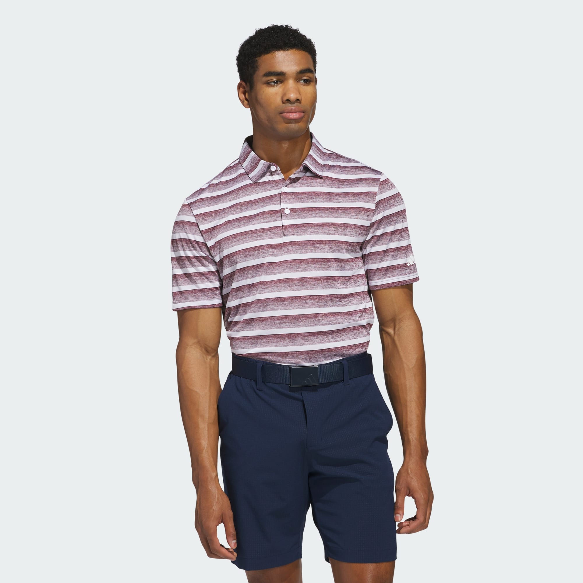 Tee off in classic style. This adidas golf polo shirt has allover stripes that elevate your look on the course. The soft piqué fabric keeps you comfortable from first drive to final putt. Made with 100% recycled materials, this product represents just one of our solutions to help end plastic waste.